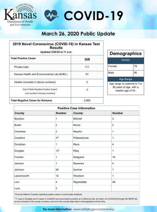KDHE reports COVID-19 numbers for March 26