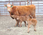 Brent Emmerson's six-year-old Simmental cross-bred cow defied the odds on April 2 when she gave birth to triplets. According to Cattlenetwork, www.cattlenetwork.com, only one cow out of 105,000 cows will give birth to triplets. Emmerson, rural Fort Scott, who has been raising cattle for about 20 years, said he has had cows that have given birth to twins before, but this is the first time he has ever encountered triplets among his cattle...