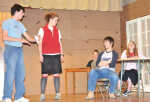 High school students who attend Fort Scott Christian Heights, 1101 S. Barbee, practice scenes from their upcoming theatrical performance, "Inspector Incognito and the Kansas City Kid" written by Tim Kelly. The production, which will begin at 7 p.m. on Friday, April 17, and at the same time on Saturday, April 18, is a musical comedy... -