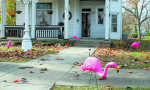 The home of Brian Leonard, a teacher at Nevada High School, was "flocked" with pink flamingos Friday morning, as part of a fundraising effort benefitting the American Cancer Society. Nevada High School Action class seniors Nathan Conley and Bethany Gregory ar placing the brilliant birds for a $10 donation. ... -