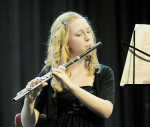 Miss Holly candidate Carly Greer plays a flute solo during the talent portion of the Miss Merry Christmas pageant Friday night at the Nevada High School auditorium. Greer is one of eight young women vying for the Miss Holly crown. In additon to the Miss Holly contest, there were nine competitors for Miss Candy Cane, 13 for Miss Snowflake and one for Miss Merry Christmas... - Uniontown girls blast Crest; boys fall (High School Sports ~ 12/11/10)