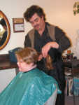 Donald Pickering, 11, of Nevada sits patiently while Patrick Ogle of the Niles Hair Salon cuts the long hair it took Pickering two years to grow. Pickeriing saw a commercial on TV with some children who had no hair because they were undergoing cancer treatment. ... -