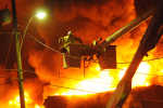 Fueled by a building chocked with flammable substances, a rampaging Friday night conflagration leveled a venerable Nevada business, knocked off power for blocks and choked the downtown area with toxic fumes from a towering black and gray cloud of volcano-like smoke... -