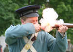 Nevada High School junior Dakota Mitchem fires a Civil War era rifle Thursday morning at Fort Scott National Historic Site. Nevada third graders visited the fort to learn about life in that period in history. Students also played games and took part in other activities... -