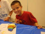 Brock Marquardt paints his rock with an Aboriginal design at the Nevada Public Library's Summer Reading Program, "One World, Many Stories." Last week's program was about Australia. The young readers listened to Australian tales, did Aboriginal art, and made a replica of Ayers Rock that they could eat. Tuesday, June 14 at 1 p.m., in the community center, the children will visit China. They'll be making a yummy panda, too... -