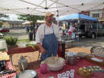 Guest chef Randy Gregg talks to a Farmers' Market patron on a recent Saturday. The market is held every Tuesday and Saturday on Skubitz Plaza in downtown Fort Scott. Hours on Tuesdays are 4 p.m.-7 p.m. and 8 a.m.-noon on Saturdays. See Mary Corpstein's Farmers' Market column on Page 4 of today's Tribune. (Ruth Campbell/Tribune)...