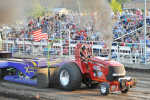 Ronnie Greene, of Clinton, Mo., driving his tractor Basket Case, completed a second-place pull of 322 feet in the 5900 Pro Field Tractor division of Saturday evening's Missouri State Tractor Pullers Association competition to close out the 2011 Bourbon County Fair. Greene is currently in third place in the total point standings.(Michael Pommier/Tribune)... -