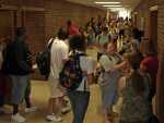 Students fill the northwest hallway of Bailey Hall Monday for the first day of class at Fort Scott Community College. College officials were stationed around the building to greet students and help them find their classes, if needed. (Kathleen Hinrichs/Submitted Photo)... -