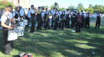 Fort Scott Community College Band Instructor Betty Jo Laflen leads the marching band at a pep rally Thursday evening, held across from Fort Scott High School. About 120 people attended the pep rally and tailgate party before the FSCC Greyhounds faced the Blinn College Buccaneers in their home-opener Thursday at Frary Field. ... -