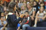 The 'Flying Babe;' Stunt pilot appearing at Airport Day talks to kids at Fort Scott Middle School about her career.