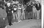 Uniontown High School students (third from left) Brittany Tanner, Amelia Brown and Rachel Henderson conduct the "See You at the Pole" event at UHS early Wednesday morning. The annual event drew approximately 30 students, teachers and patrons who surrounded the school's flag before classes began. It is sponsored by the UHS Fellowship of Christian Athletes... -