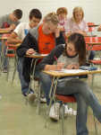Area high school students work on math problems Friday afternoon during the second annual Math Relay competition at Fort Scott Community College. Nearly 200 high school students from around the region participated. For full results, visit www.fstribune.com. (Submitted Photo)... -