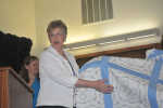 Fort Scott resident Joyce Lundeen explains her quilt's story to an audience of about 15 Saturday during the Fort Scott National Historic Site's exhibit "Voices From the Quilts."(Angelique McNaughton/Tribune) -