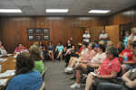 Wearing makeshift white and blue paper buttons on their shoulders with the slogan "Teachers want what's right ... Not what's left," more than 20 instructors filled the tiny USD 234 Board of Education room Wednesday morning, actively listening to the discussions regarding their salary and insurance benefits for the upcoming school year... -