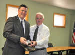 City Manager Dave Martin recognized the fifth and final Lowell Milken Center Fellowship honoree on behalf of Fort Scott Tuesday morning at City Hall. Journalism and AP language and composition teacher Chris Waugaman, Prince George High School, Va., is spending the week -- and holiday -- visiting Fort Scott and collaborating with the center. Like the fellows before him, local officials awarded Waugaman a key to the city and letter of recognition... -