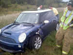Firefighters inspect this Mini Cooper after it was involved in an accident approximately .1 miles south of Birch Road on U.S. 69 South at 12:40 p.m. Wednesday. Bourbon County Undersheriff Bill Martin said Danny Gillum of Unionville, Mo., was operating a semi-trailer traveling north on U.S. ... -