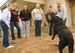 Maddie, an older black lab, prances around the grounds of Lee's Paws and Claws no-kill shelter on Thursday, tail wagging, while chasing a new toy that was one of 10 donated to the shelter by the Fort Scott High School chapter of the Family, Career and Community Leaders of America... -