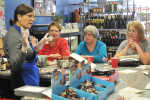 Twenty-two tourists from the Burlington area toured Fort Scott on Wednesday. Cynthia McFarlin, left, owner of life+style shop in downtown Fort Scott, answered questions about the chocolate truffle demonstration she provided for the group. Also pictured are Roberta Allen, Melvern; Linda Watson, Lyndon; and Julie Todd, Lyndon...