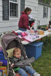 Amber Cain, Richards, Mo., organizes items at a garage sale at her sister, Holly Lafevre's home at the corner of 23rd and Horton streets on Friday while her young daughter watches passers-by. The sisters were part of the area wide garage sale that continues Saturday... -