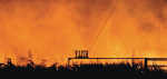 Laurie Sisk/Tribune photo A large fire that is believed to have been a controlled burn lights up the night sky Monday south of Deer Road on 200th St.