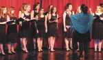 Mary Jo Harper, choir director at Fort Scott High School, directs the women's ensemble during the 2013 FSHS Ensemble Concert Monday night in the FSHS auditorium. The group, which sang "Starshine Bright," included Akasha Boles, Bailie Brown, Jessica Combs, Jasmine Davis, Holly Duff, Clare Gorman, Katie Gorman, Delane Gray, Karlea Harris, Elinor Johnson, Alex King, Emily Martin, Cire' Miller, Suzi Owen, Andrea Parsons, Peyton Quick, Emmah Reeves, Alexsis Richling and Taylor Watkins... -