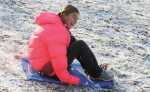 Sarah Steadman, 9, reacts as she sleds down a snow- and ice-covered hill at Third Street Park Tuesday afternoon. Steadman and other youngsters took advantage of the slick conditions caused by a winter storm that hit the area last weekend to enjoy some sledding on Christmas Eve...