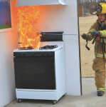 Fort Scott Firefighters presented a demonstration on fire safety Wednesday to Joyce Davenport's Fort Scott High School Culinary Essentials class. Members of the Fort Scott Fire Department set up a kitchen prop at the high school practice field to demonstrate a potential fire hazard. ... -