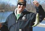 Eric Reese of Kansas City shows off the rainbow trout he caught Thursday afternoon at Gunn Park's Fern Lake. Reese said he and a friend had caught about 12 fish in one-and-one-half hours of angling. Reese, who works for BNSF Railroad, said he fishes to relax during his time off. They catch and release the fish, Reese said. The trout are stocked by the Kansas Department of Wildlife, Parks and Tourism with the assistance of the City of Fort Scott... -