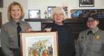 Carol Grant, a Fort Scott National Historic Site volunteer from Wichita, recently donated a framed reprint of the Jerry Thomas painting "Watching Parade," (Fort Scott, Kansas, 1842-1853). The painting also appears on the cover of Dr. Leo E. Olivia's book, "Fort Scott: Courage and Conflict on the Border." Information from the book states Thomas, "a nationally acclaimed artist, has made a career of creating wildlife and western art. ... -