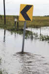 Rainwater that washed over 160th Street flows along the roadside and around a road sign north of Devon following a thunderstorm that blew through a portion of the county Friday afternoon. The storm brought with it 60-mph wind gusts, downed some tree limbs and caused flash flooding in spots. The Tribune had received no reports of severe damage caused by the storm as of press time... -