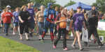Captain America and other participants take part in the survivor and caregiver lap Friday evening during the annual Bourbon County Relay For Life held on the campus of Fort Scott Community College. Shawn O'Brien, co-chairman for the local chapter, said this year's goal is to raise $50,000. The event began at 6 p.m. and was expected to wrap up at 6 a.m. today... -