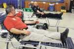 Fort Scott Police Department Capt. Shaun West, left, and FSPD Chief Travis Shelton chat while preparing for blood donation Thursday during the annual Battle of the Badges Blood Drive for the American Red Cross at Buck Run Community Center. The event pits local law enforcement agencies against local fire departments in a friendly competition to see who can donate the most blood... -
