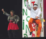 Fort Scott Middle School Principal Jim Howard and his dancing partner Fort Scott Community College Theatre Director and Teacher Sarah Mae Lamar perform "Mash-Up Mix," a medley of dances to fit this year's Dancing With Our Stars them: Dancing Through the Decades." They were one of 10 couples who raised about $4,000 for area charities Saturday at the Danny and Willa Ellis Family Fine Arts Center on the FSCC campus. ... -