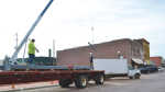 Construction workers Richard Brannon, left, and Scott Moore, both of Kansas City, Mo., unload structural steel Wednesday to be used for construction of the new Lowell Milken Center for Unsung Heroes building at the corner of Wall and Main streets in downtown Fort Scott. They are employees of HCH Construction, Kansas City, Mo. Brannon said it will take three weeks to put up the steel structure... -
