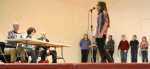 Fifth grade student Maia Martin spells a word during the spelling bee Saturday as judges Dave Elliot, Becky Johnson and Tom Robertson listen. The event was held at Buck Run Community Center and was for students in first through fifth grade. -