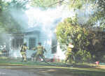 Firefighters from Fort Scott Fire Department battle a blaze in the 100 block of east Wall Street Friday. The initial page, which was shortly before 5 p.m., stated the front of the house was engulfed. Traffic was detoured while the firefighters worked... -