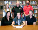 Fort Scott High School senior Emily Hale (seated, center) signed her letter of intent Wednesday morning to play softball at Cleveland State University beginning in the 2017-18 season. Cleveland State is an NCAA Division I school and a mamber of the Horizon League. With Emily as she signed were (clockwise from upper left) FSHS assistant coach Allison Gorman, head coach Sean Krokroskia and assistant Brian Pommier, and her parents, Des and Amanda... -