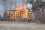 Bourbon County rural firefighters battled a fire that burned down three structures Wednesday in Redfield. Several rural fire departments responded to a fire that broke out about 4 p.m. in structures on Spruce and Cedar streets. Bourbon County Fire District No. 3 Chief Delwin Mumbower said Thursday said the initial call came in as a grass fire. Windy conditions then helped the fire spread to the buildings... -