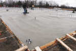 Workers with RII Concrete Construction of Fort Scott work Thursday afternoon to smooth out concrete on the slab at the construction site of the new Bourbon County Law Enforcement Center at 323 E. 20th St. After completing some preliminary work at the site, workers began pouring 700 yards of concrete about midnight Thursday. Finishing touches were being put on the concrete Thursday afternoon. Bourbon County Commissioners visited the site Tuesday...