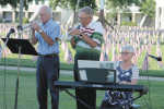 A trio of musicians, from left, trumpeters Norm Jones and Steve Harry, and pianist Pat Harry, perform patriotic music as part of Symbols of Sacrifice activities Saturday night at the Fort Scott National Historic Site. The trio performed tunes such as “God Bless the U.S.A.,” “You Raise Me Up,” and “America the Beautiful.”...