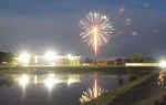 Fireworks light up the night sky and reflect off the lake at Fort Scott Community College during a community fireworks display Monday night. The display was coordinated by the Elks Lodge No. 579.