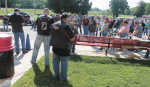 Pastor James Collins, far left, leads the crowd in prayer prior to the start of the fifth annual Fort Scott Wreath Ride Saturday at Buck Run Community Center. The event raised enough money to place wreaths on 2,053 veterans’ headstones at the Fort Scott National Cemetery in December... -