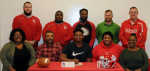 Three Fort Scott High School seniors signed letters of intent to play football at in-state colleges in the high school commons Wednesday morning. Zarek Fewell, who set FSHS records for single-season rushing yards, total touchdowns and total points last season, signed to play at Garden City Community College. The Broncbusters, NJCAA National Champions in 2016, are coached by Jeff Sims, who was head coach at Fort Scott Community College from 2007-2010... -