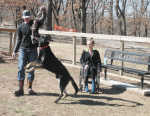 Avery Johnson, left, of Pleasanton, plays with Maverick, a full-blooded German Shepherd Friday afternoon at the dog park located inside Gunn Park. Johnson and Madison Slinkard, also of Pleasanton, took advantage of sunny weather and temperatures in the 50s to get some play time in with Maverick. Johnson said they are training Maverick to be a service dog... -