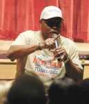 Roger Mosley, recipient of the 2018 Choice of Weapons Award, answers a question from an audience member during “A Conversation with Roger Mosley,” a discussion that took place Friday morning in the FSCC Ellis Fine Arts Center theatre. The Gordon Parks Celebration continues today and concludes with a dinner honoring Mosely at 6 p.m. at Liberty Theatre. -