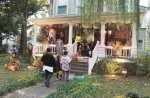 Sandy Areu waits on her porch as trick-or-treaters Reegan McDaniel, Landon McDaniel and Avery McDaniel approach her decorated house Wednesday night. The home of George and Sandy Areu at 502 S. Eddy St., featured a display that included skeletons, ghosts and a variety of Halloween-Themed artwork and spooky creatures... -