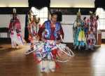 Kevin Connywerdy with the Oklahoma Fancy Dancers performs a dance using hoops Saturday inside the Grand Hall at the Fort Scott National Historic Site. The hoop dance is sacred as it symbolizes the circle of life, Connywerdy said. He used the hoops to create different symbols, such as an eagle and the earth. Members of Connywerdy’s family, who also performed various dances, look on... -